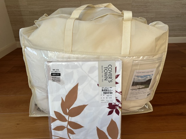 • 感想: 羽毛布団の暖かさをさらにブーストしてくれます。ナチュラル系の葉のイラストも落ち着いた色味がします。