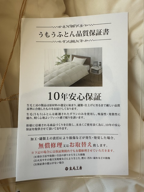 例年通り、ビックカメラグループの寝具ブランド**「生毛工房(うもうこうぼう)」**のアイテムでした。